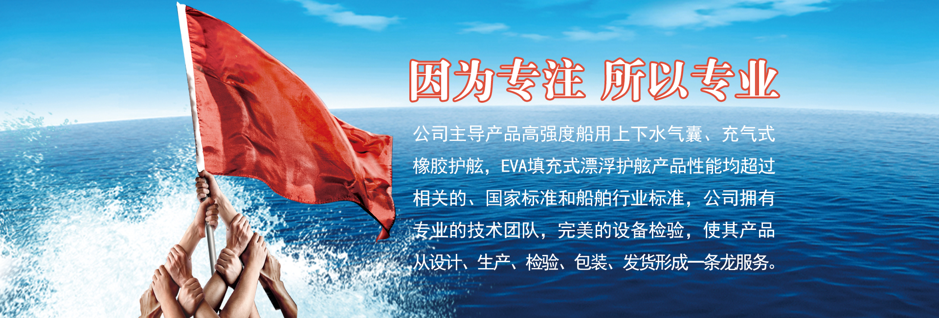 公司主导产品高强度船用上下水气囊、充气式橡胶护舷,Eva填充式漂浮护舷产品性能均超过相关的、国家标准和船舶行业标准,公司拥有专业的技术团队,完美的设备检验,使其产品从设计、生产、检验、包装、发货形成一条龙服务。